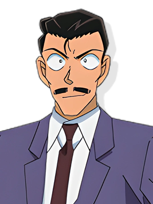 Background: Former police detective; aids Conan unknowingly; his reputation rises due to Conan’s assistance in solving cases; often takes credit for cases Conan actually solves.